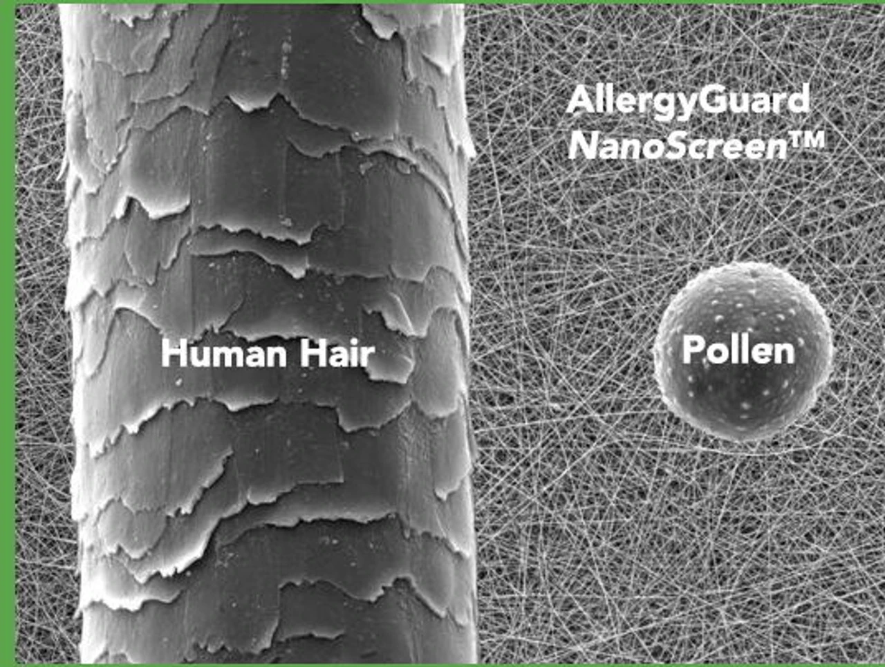 BMT AllergyGuard™ NanoScreen™ delivers superior filtration performance. The only product that screens out such fine particle sizes. BMT AllergyGuard™ allows people to enjoy fresh air without worrying about pollen, pollutants, or other fine particles from entering their home or office. Our purpose is to promote health and wellness across North America and our goal is to empower millions of people that suffer from allergies to turn off the air conditioners and open their windows and doors and let the fresh air flow into their homes and work environments.